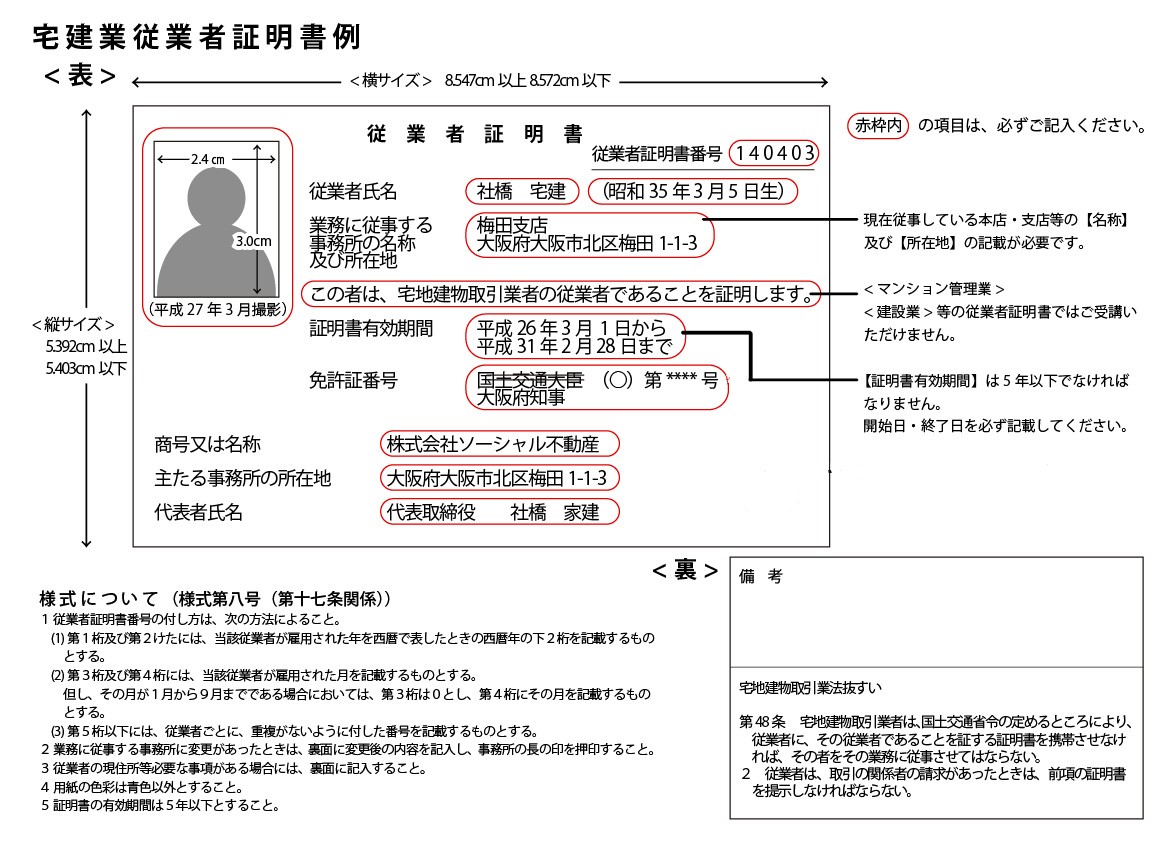 ※従業者証明書(宅建業法施行規則第17条別記様式第8号に基づく)の写しをご提出いただきます。